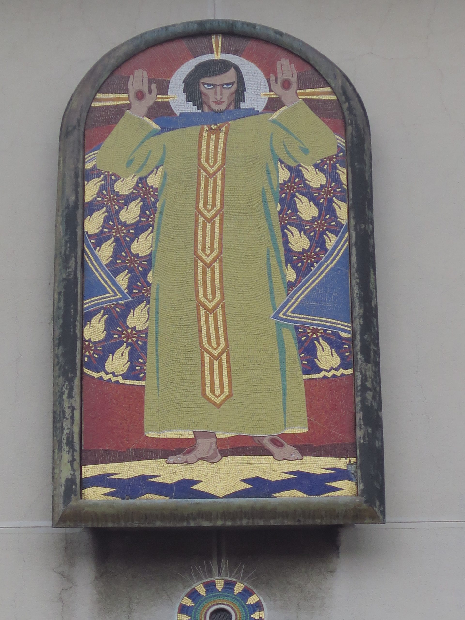 Niko Vurnik kot Kristus v mozaiku na pročelju ljubljanske cerkve svetega Petra, vse fotografije Marijan Zlobec